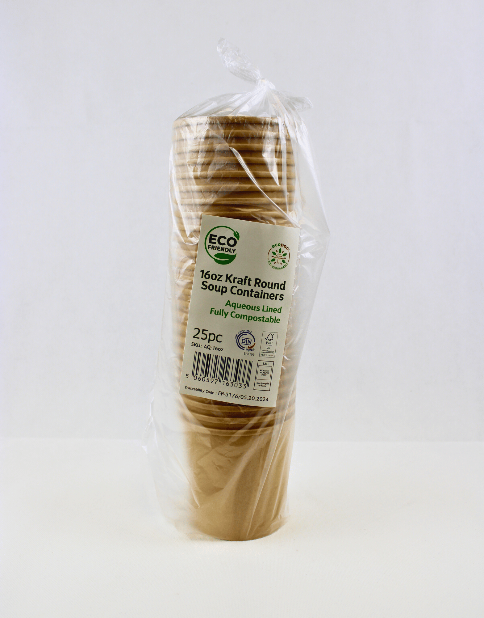 Our 16oz soup cup is the perfect solution for serving both hot and cold foods. Made from compostable kraft paper, this cup combines environmental sustainability with exceptional durability. Whether you're serving hot soup or a chilled dessert, it can be safely heated or refrigerated without losing its strength. Ideal for eco-conscious individuals and businesses, this versatile cup offers a sustainable and practical choice for all your food service needs. Please note: lids are sold separately.