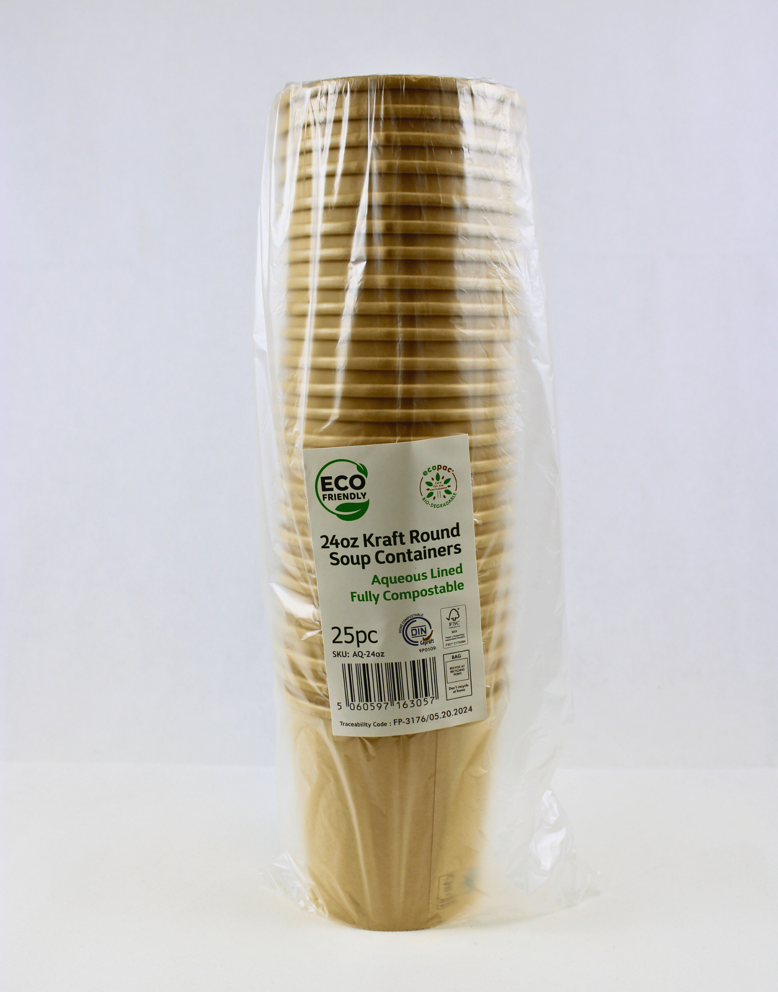 Our 24oz soup cup is the ideal choice for serving both hot and cold foods. Made from compostable kraft paper, this cup is designed to be eco-friendly while offering exceptional durability. Whether you're serving hot soup or a chilled dessert, it can be safely heated or refrigerated without losing its strength. Perfect for eco-conscious individuals and businesses, this versatile soup cup provides a sustainable and practical solution for all your food service needs. Please note: lids are sold separately.