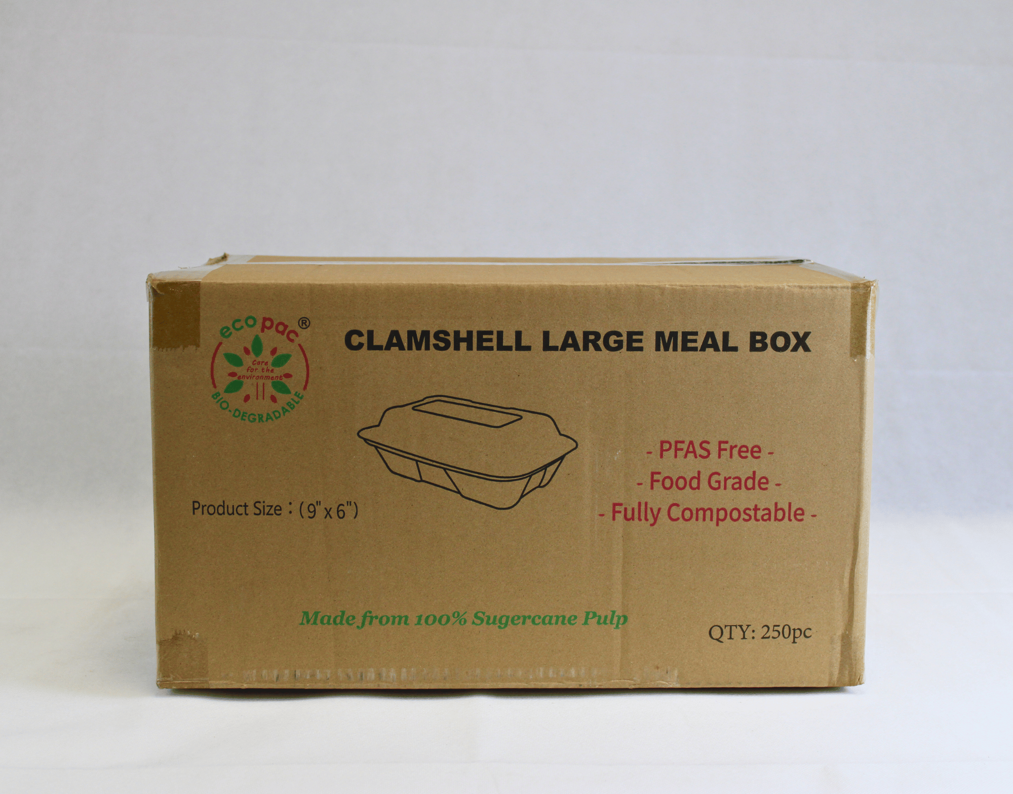 Designed to accommodate a complete meal, this box is perfect for any food service business looking to offer sustainable takeaway options. Measuring 9 inches by 6 inches, this clamshell box is specifically designed to hold a full meal, including mains and sides. Its generous size allows you to fit items like a burger and fries, ensuring your food is presented neatly and securely for takeaway orders. Made from Bagasse, a byproduct of sugarcane processing, this meal box is an excellent sustainable choice. Bagasse is not only biodegradable but also recyclable, making it an environmentally responsible option for your business. Our Clamshell Large Meal Box is designed to be sturdy and durable, ensuring it can withstand the rigors of daily use. It provides a reliable solution for takeaways, maintaining the integrity of your food without compromising on quality. By choosing our recyclable Bagasse meal boxes, you’re demonstrating your commitment to reducing waste and promoting a greener planet. Attract eco-conscious customers who appreciate your efforts to provide sustainable products. Lightweight and easy to handle, these boxes are perfect for busy food service environments. They offer the perfect balance of functionality and sustainability, making them an excellent choice for any takeaway business.