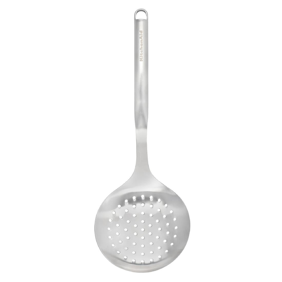 A true kitchen essential, the KitchenAid Premium skimming spoon is ideal for draining foods from hot oil, water or broth with ease. Durable for everyday use, the strainer is made from stainless steel, which also gives it a sleek, modern look. It's also dishwasher safe for easy clean-up.