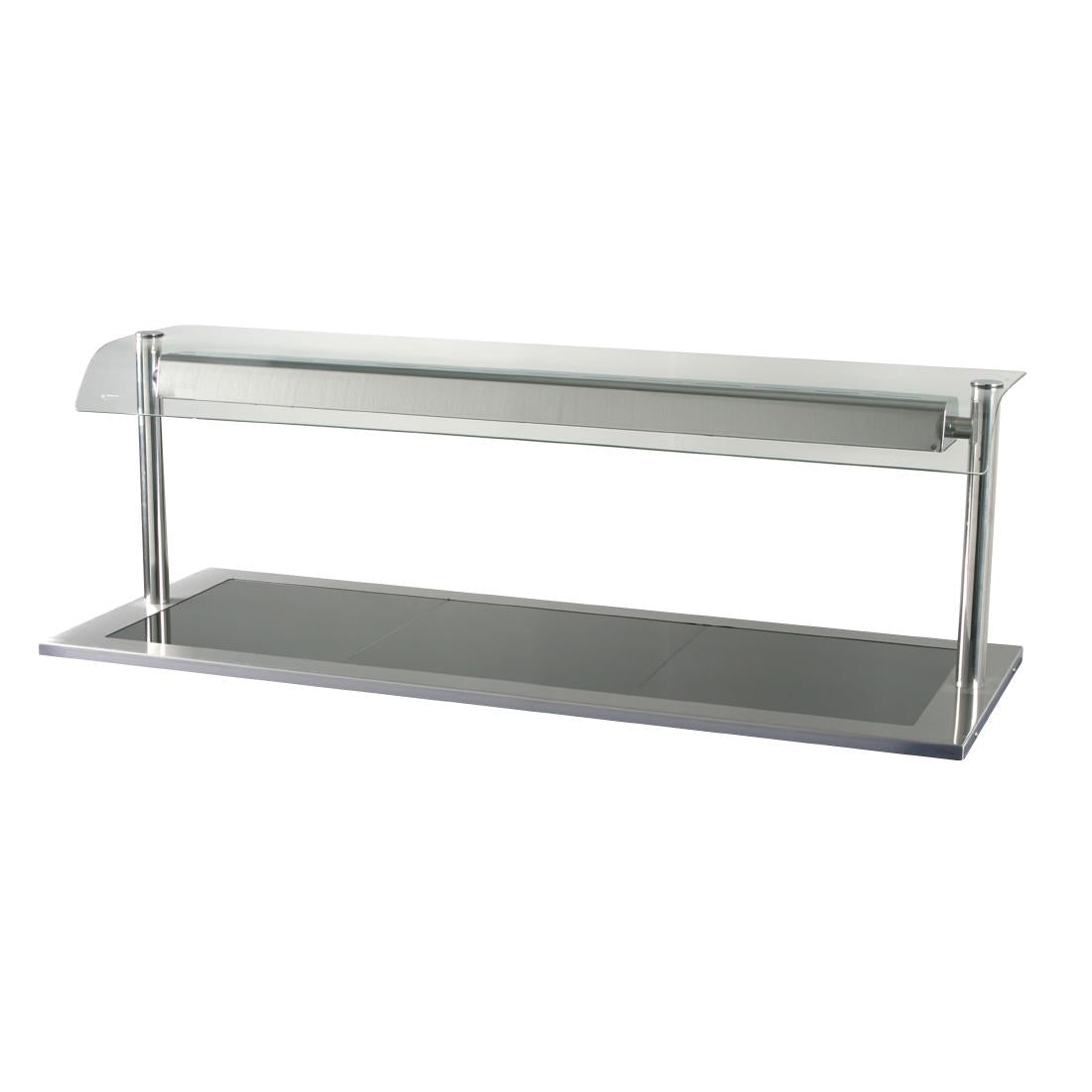 An attractive display that maintains the temperature of hot food using an energy regulator controlled element providing heat to the base, with supplementing dimmer controlled quartz halogen heat lamps above.Please note: this product is made to order and as such is non-returnable.
